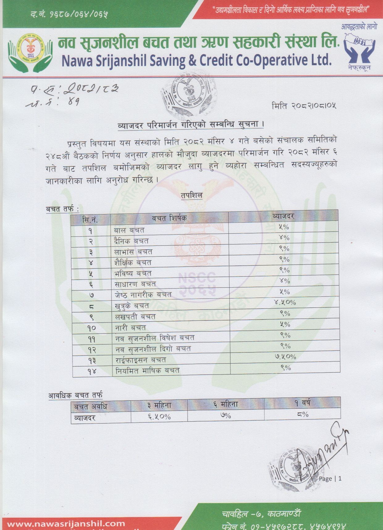 The office of this Nawa Srijanshil Savings and Credit Co-operative Society Ltd., established in accordance with the Government of Nepal Co-operatives Act, 2048 BS on 4 th Asaar 2065 BS, is located at Ka.Ma.Pa-7, Chabahil . Before Srijanshil Savings Fund has been established with the objective of solving small financial problems by mobilizing small savings from around 24 creative young entrepreneurs from since 28th Bhadra, 2057 BS. Registered Current Nawa Srijanshil Savings and Credit Co-operative Society Ltd. The organization, which came into operation with a small capital...